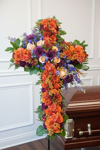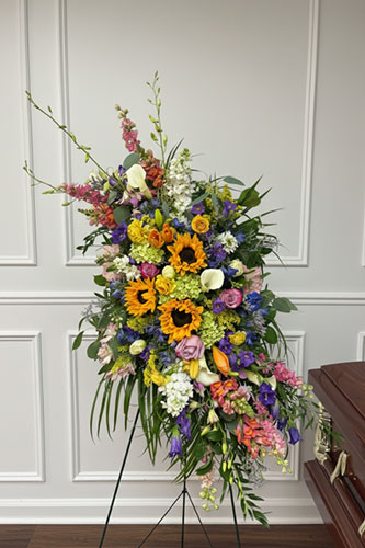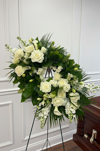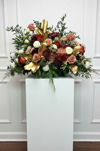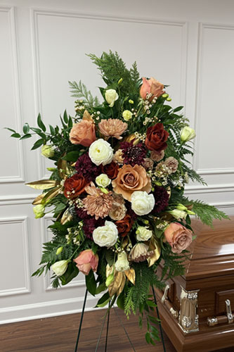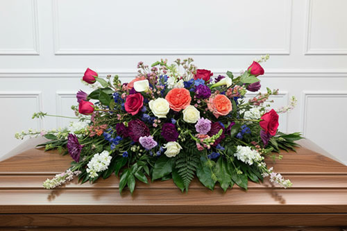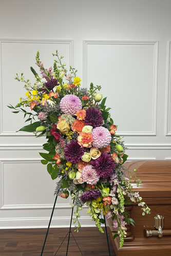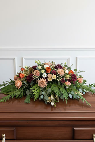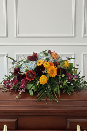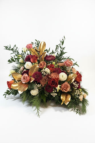 We offer a full range of floral designs for memorial services and celebrations of life, including casket sprays, hanging and standing pieces, ground meadows, abundant arrangements, and smaller sentimental tributes, as well as florals for graveside services and expressions.