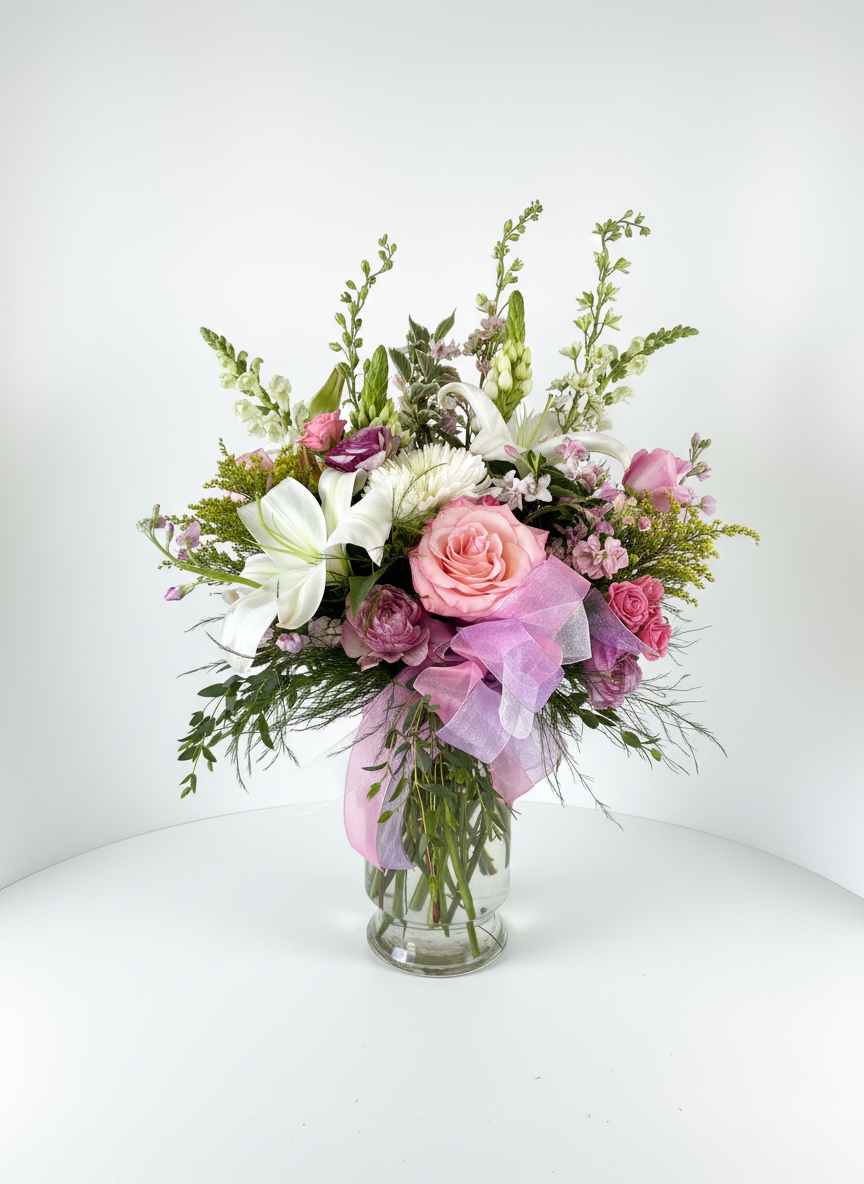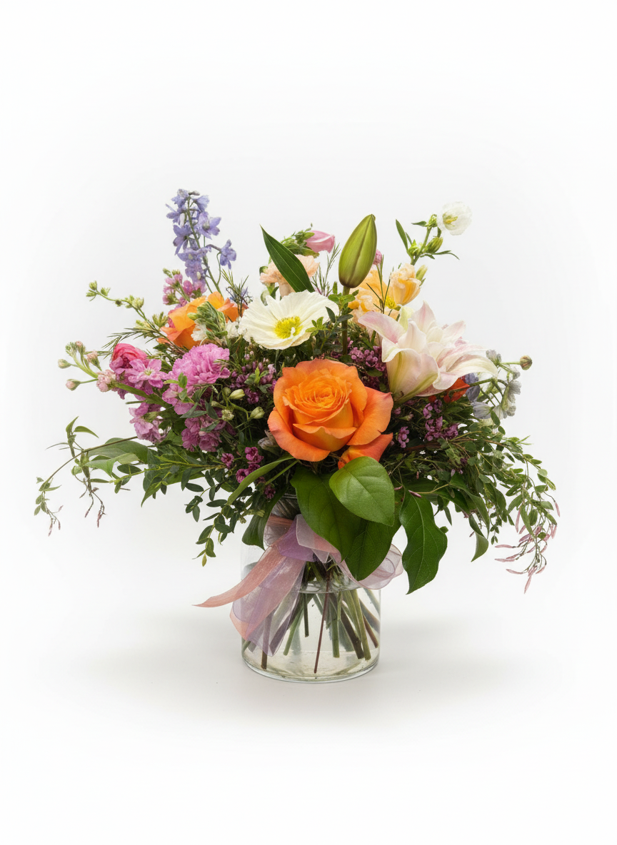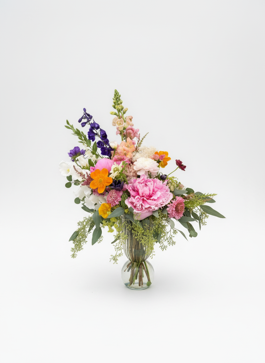 Each arrangement is a one-of-a-kind expression, shaped by the natural rhythms of the season and the unique selections available each week. This is the perfect option for those seeking a bespoke design that feels personal, artful, and made to last.