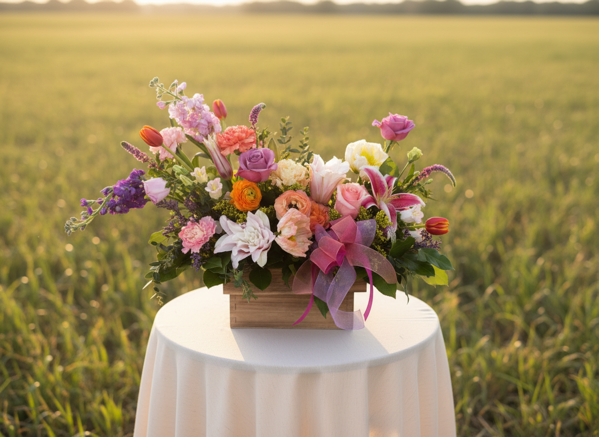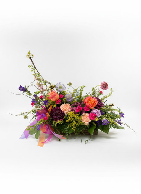The Whimsical Window Garden is a thoughtfully designed arrangement inspired by the charm of a blooming window garden. It features tall, airy stems like delphinium, stock, snapdragons, larkspur, or bells of Ireland—bringing height and movement to the design. These are beautifully complemented by lush fuller focal blooms such as peonies, dahlias, roses, mums, sunflwoers and ranunculus. Accented with seasonal favorites like tulips, and a touch of delicate carnations. A graceful, garden-style piece that feels like a breath of fresh air.