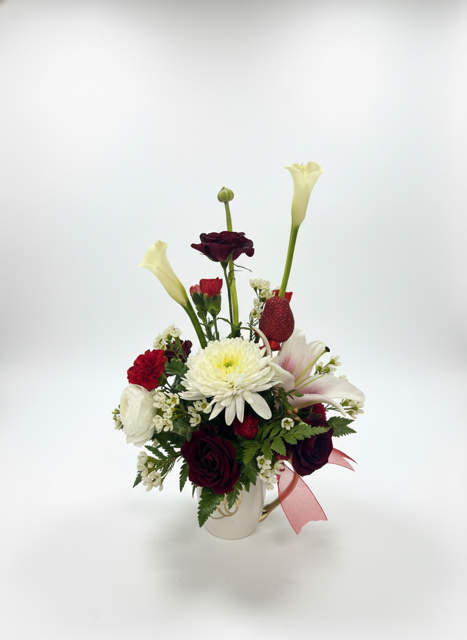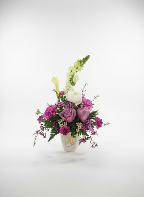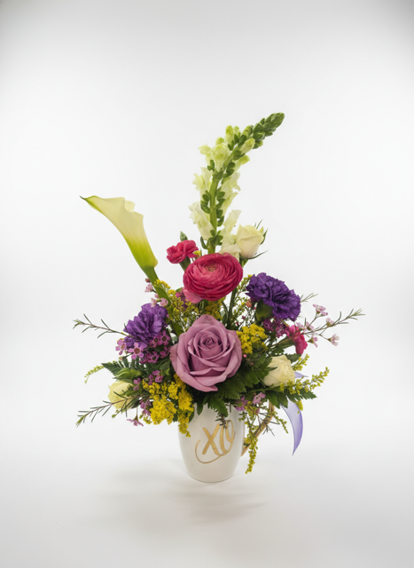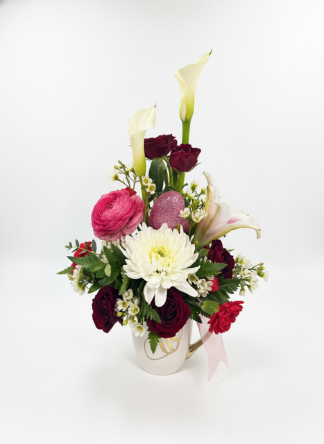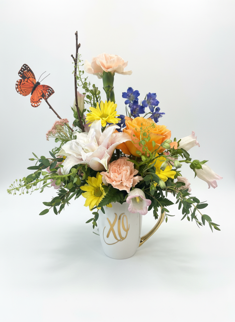 A heartfelt keepsake designed to inspire love and connection. The Cream-Colored mug accented with either XO or Love with charming metallic gold details. It makes a thoughtful gift on its own or a meaningful addition to any floral arrangement—perfect for sharing warmth, encouragement, and a daily reminder of love.